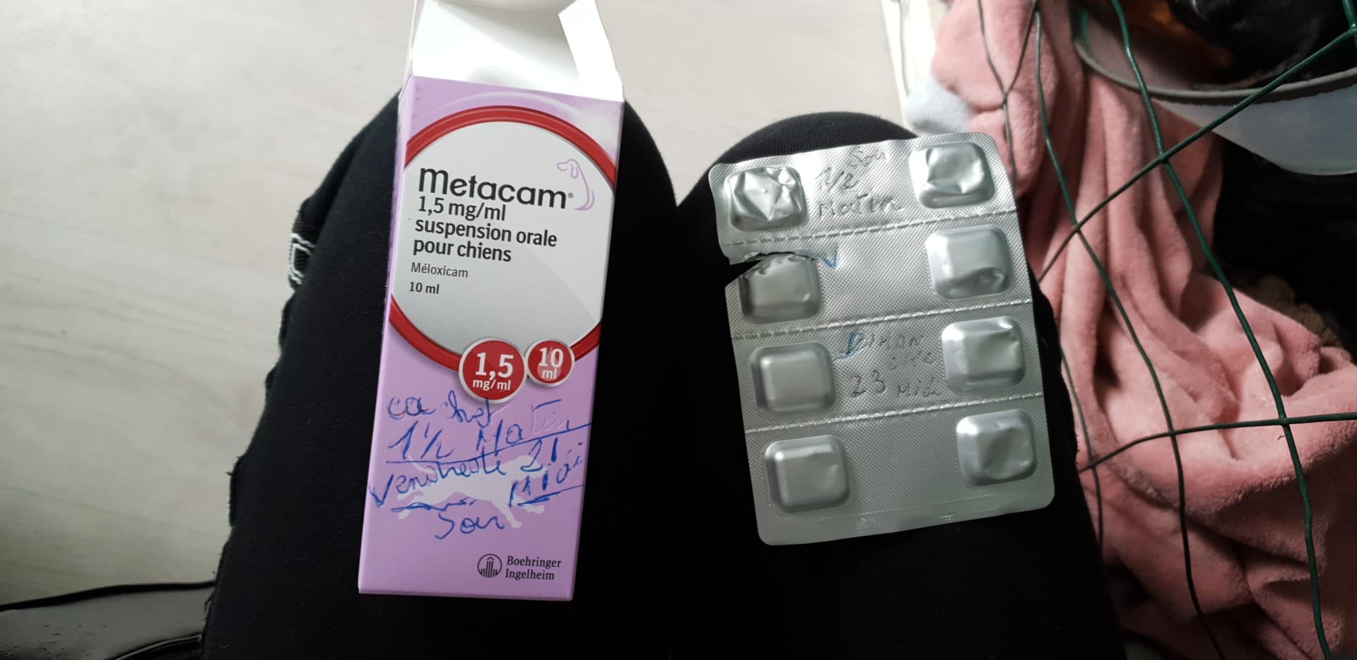 Jade sera rendue à ses propriétaires avec un traitement à base d'amoxicilline – acide clavulanique (Kesium 250 mg : 1/2 comprimé matin et soir pendant 4 jours) et de méloxicam (Méloxidyl: dose pour 7 kg, avec la seringue fournie, une fois par jour, avec un repas, pendant 10 jours). En cas d’inconfort marqué, ou d’intolérance au méloxicam, un traitement à base de tramadol pourrait être recommandé. Contacter rapidement votre vétérinaire en cas de troubles digestifs (vomissements, diarrhées, baisse d’appétit) – ceci pourrait nécessiter une modification du traitement médicamenteux.